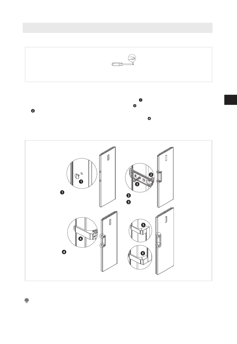 1. Retire los tapones de los orificios para tornillos de la puerta y use un