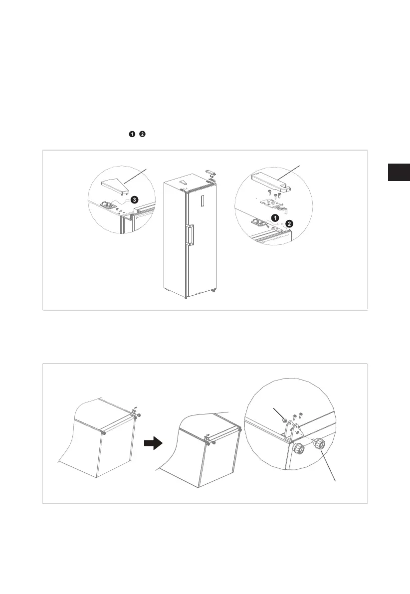 5. Retire la cubierta superior de la puerta, instale el manguito de la bisagra
