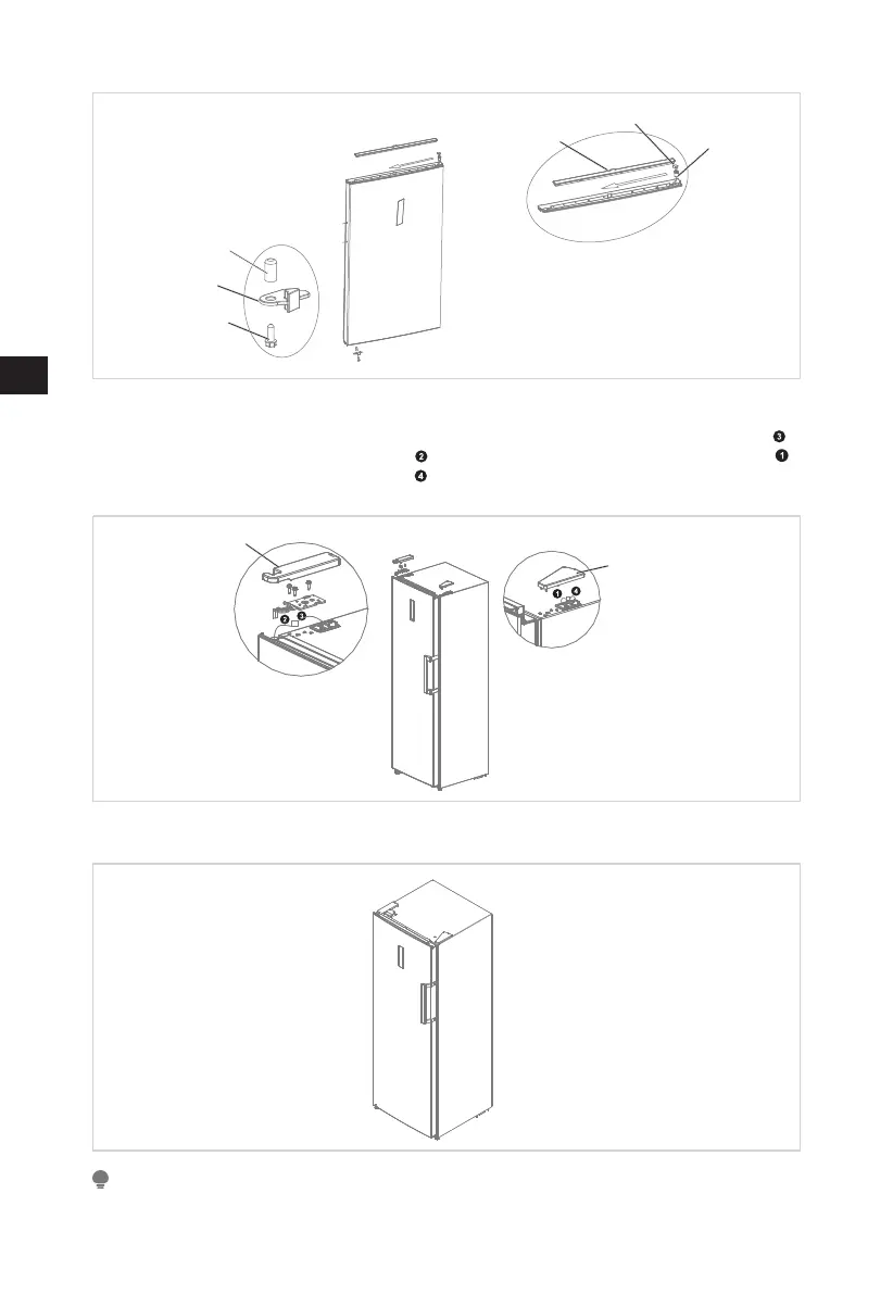 izquierda del paquete de accesorios, coloque la puerta en la bisagra inferior y