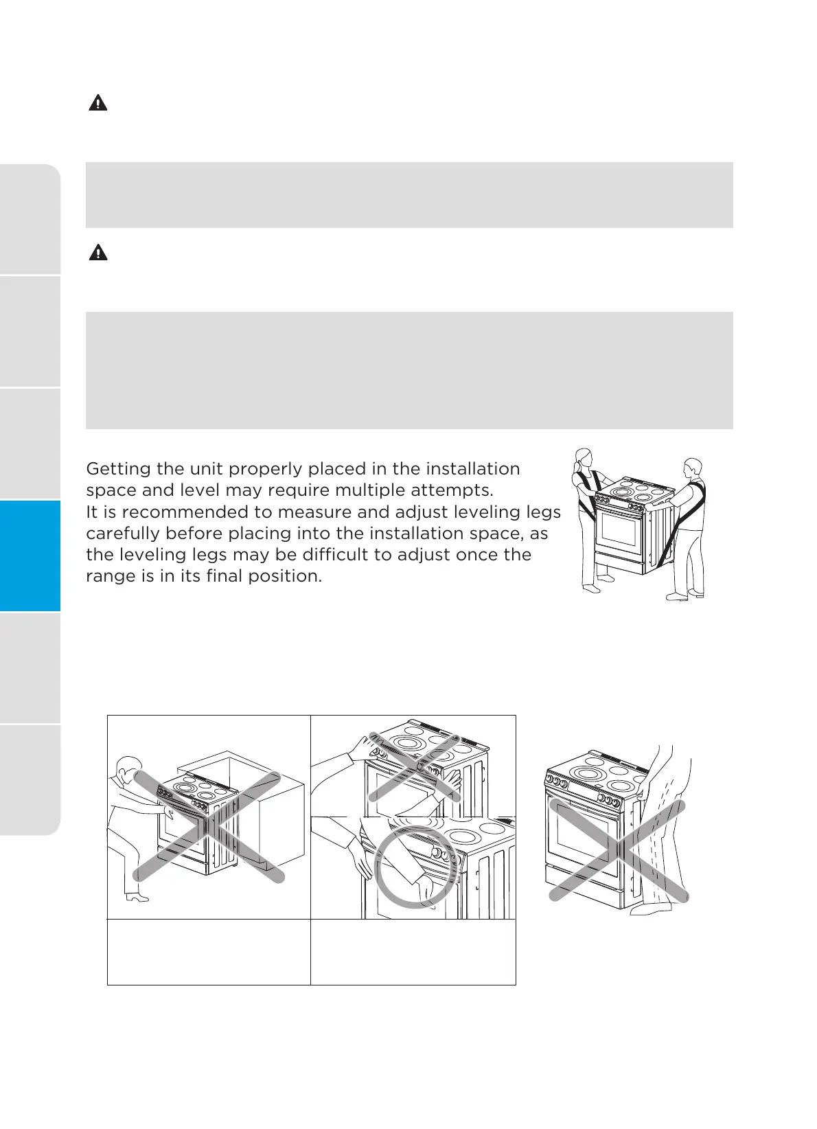 • Move range by lifting, not sliding, to prevent damage to floors.