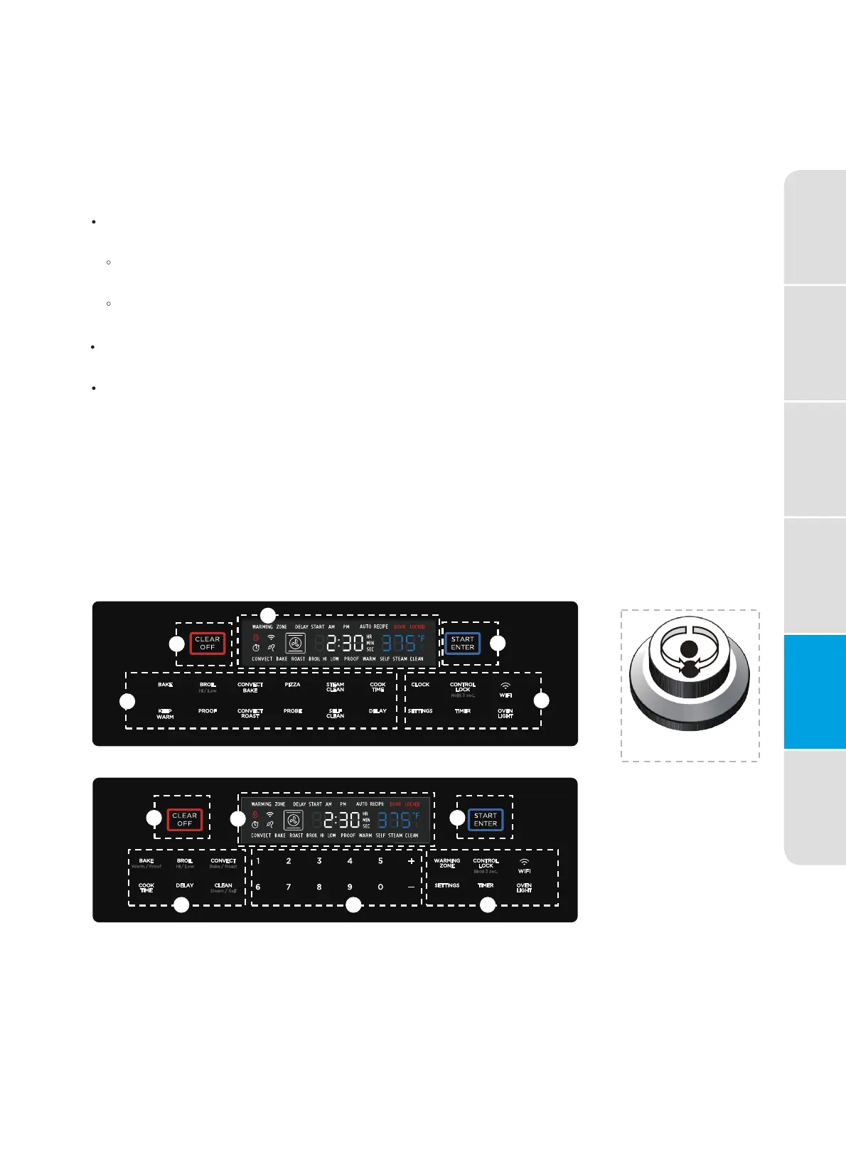 Depending on the model, the oven will have one of the following control
