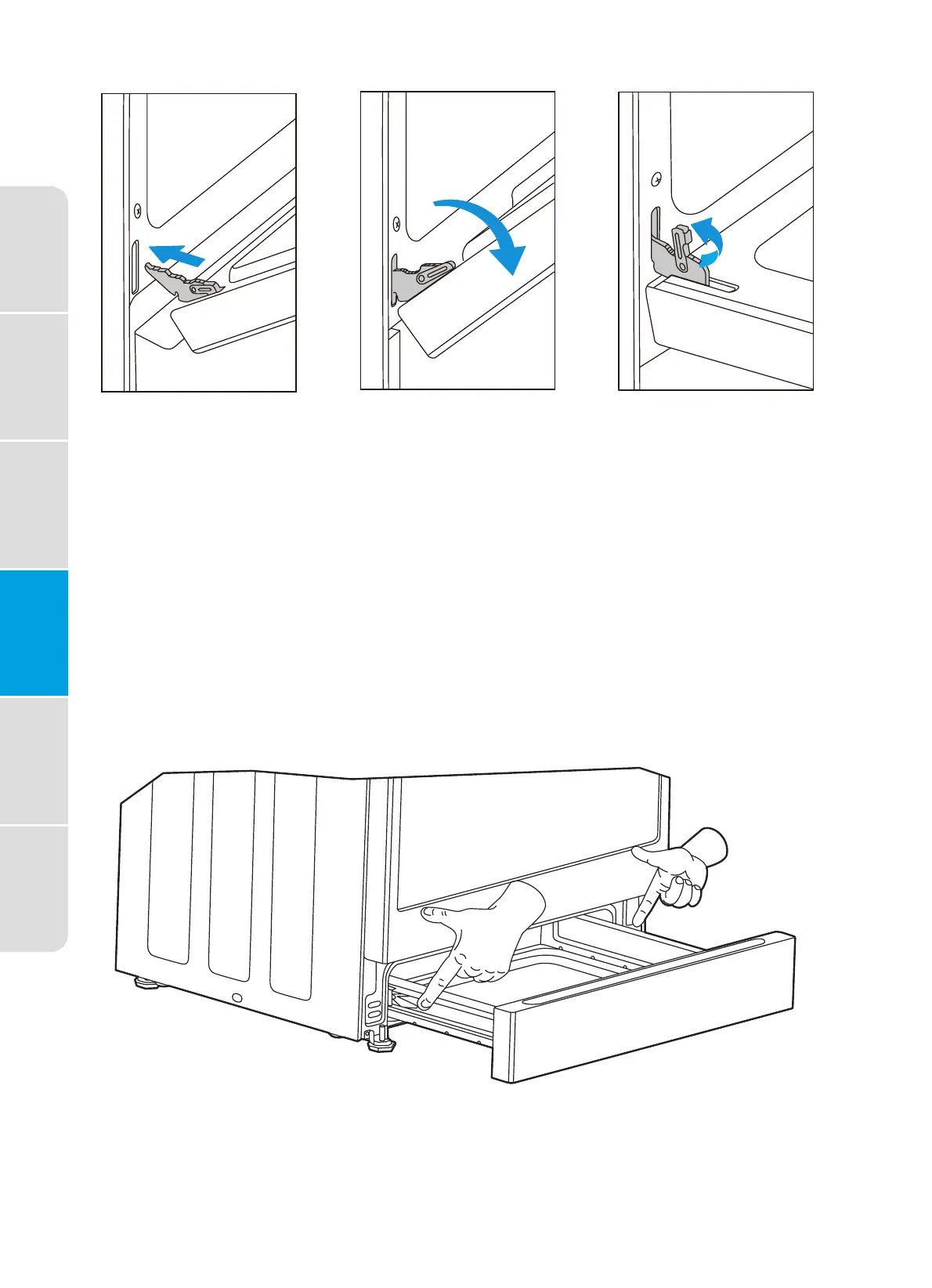 liberación a cada lado mientras tira ligeramente del cajón.