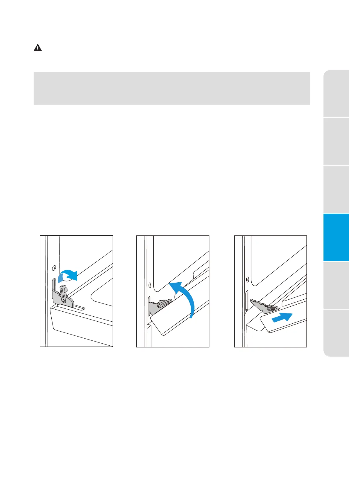 2. Sur chaque charnière de porte, rabattre le mécanisme de verrouillage pour qu’il