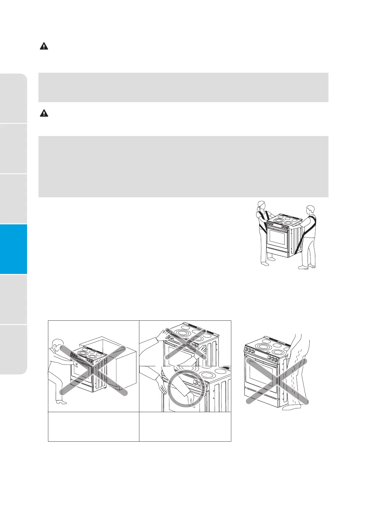 • Déplacez la cuisinière en la soulevant, sans la glisser, pour éviter d’endommager les