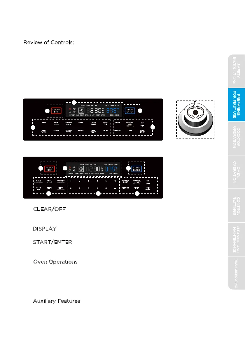 Numeric Input- Used to enter desired oven temperature, set the clock,