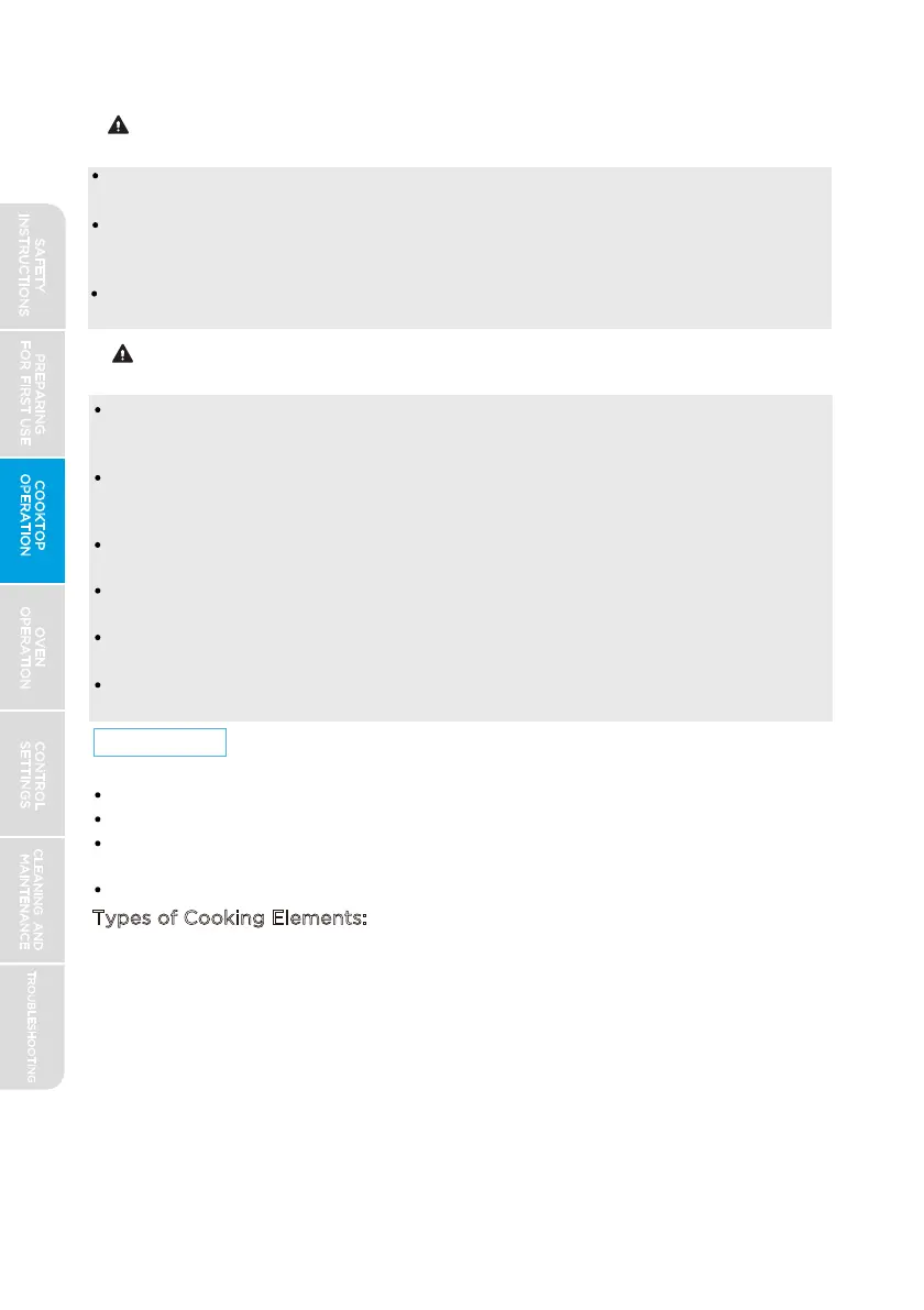 smoking and greasy spillovers that may ignite. Turn off all controls when