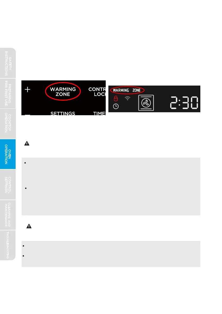 WARMING ZONE button once. To turn off, press the WARMING ZONE