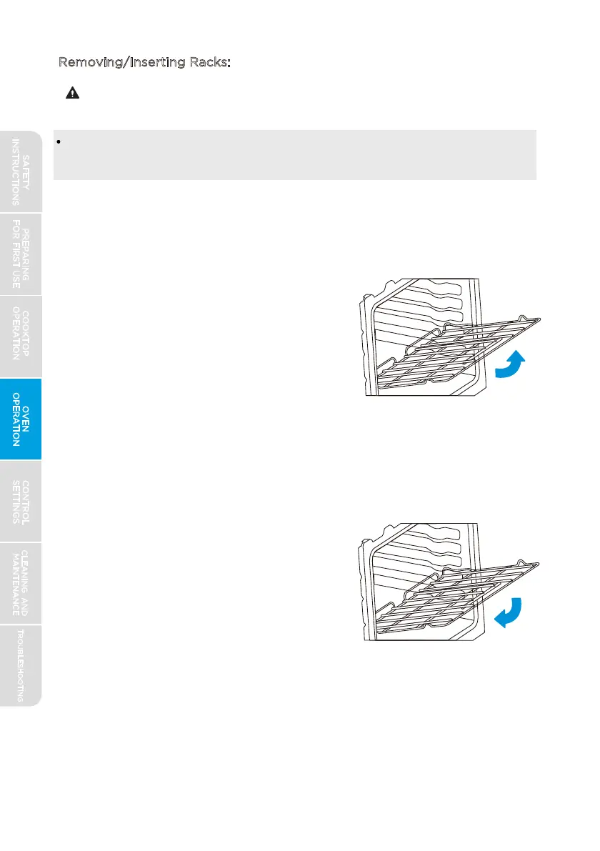 oven wall in the same manner as the flat rack. Be careful to hold the