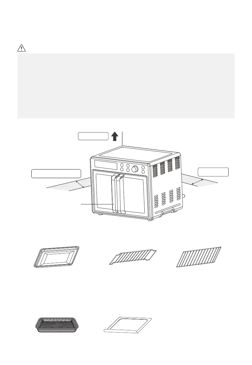 • Mantenga el horno a una distancia de 10 a 15 cm de paredes y muebles. Los objetos