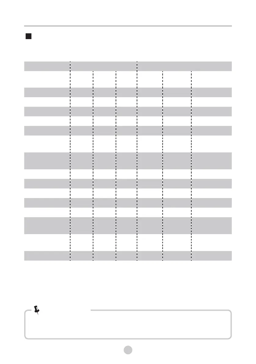 • Los parámetros de esta tabla son solo para referencia de usuario. Es