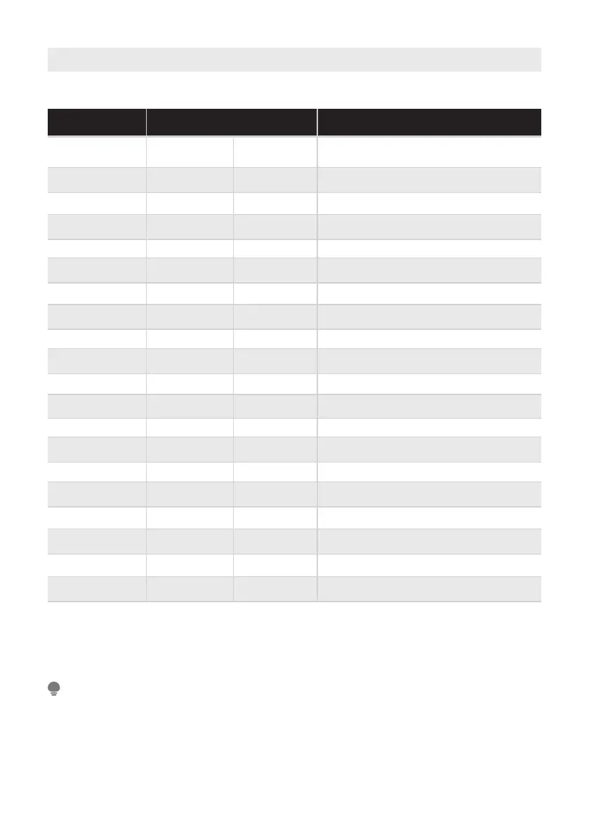• The parameters in this table are only for user's reference. The actual parameters