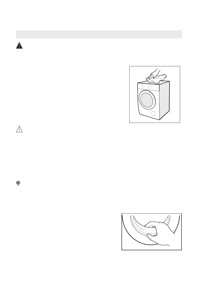 chlorine-free detergents. Never use steel wool for cleaning the drum!