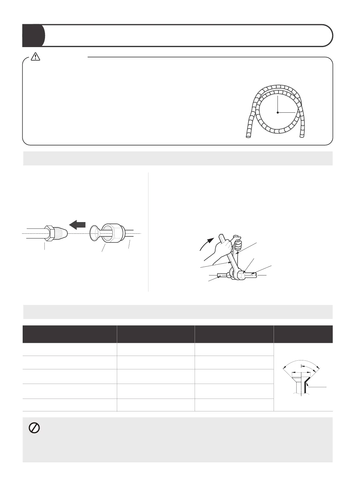 Excessive force can break the nut or damage the refrigerant piping. You must not exceed
