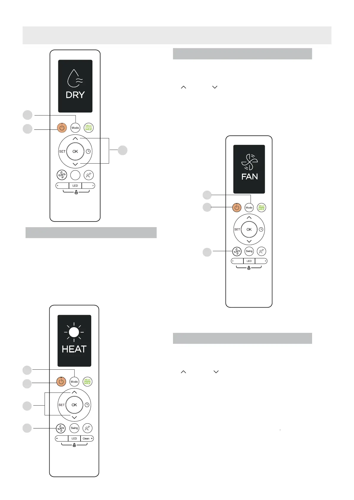 1. Press the MODE button to select FAN mode.