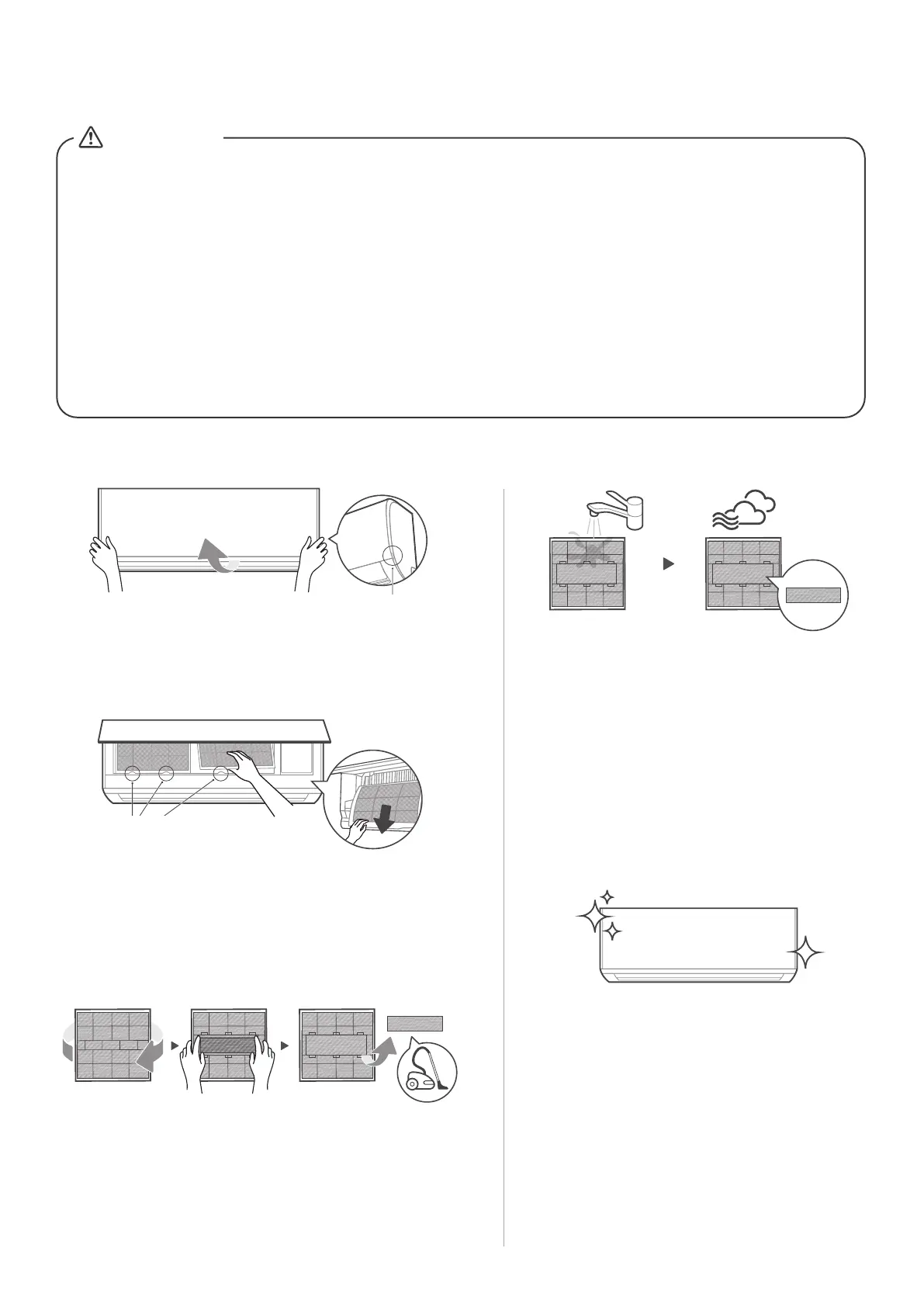 • Always TURN OFF your AC system and disconnect its power supply before cleaning or