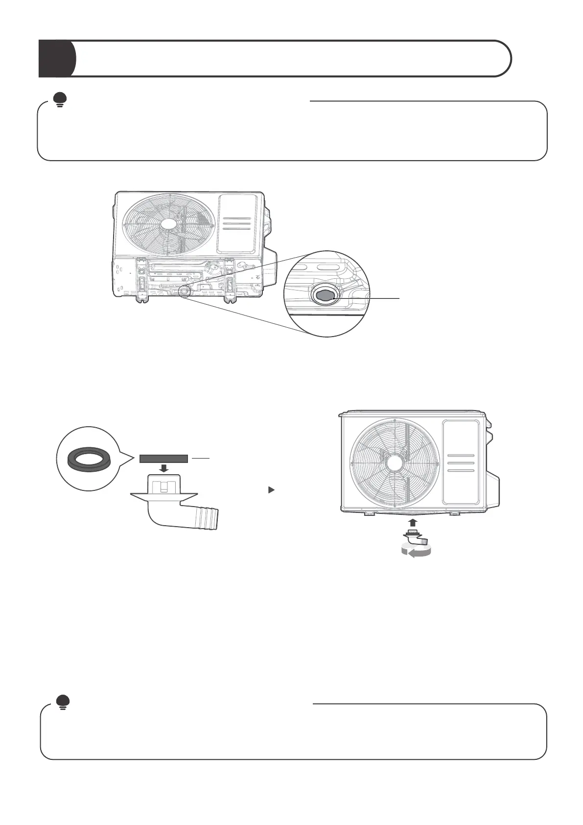 Before bolting the outdoor unit in place, you must install the drain joint at the bottom of the unit.