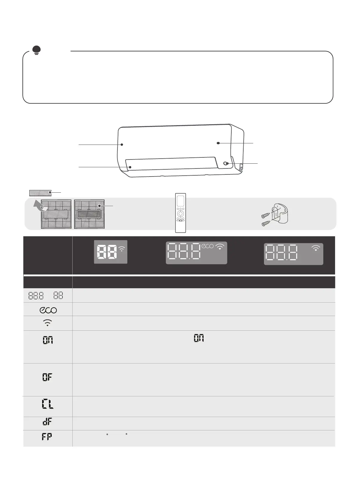 below are available for the air conditioner you purchased. Please check the indoor display window