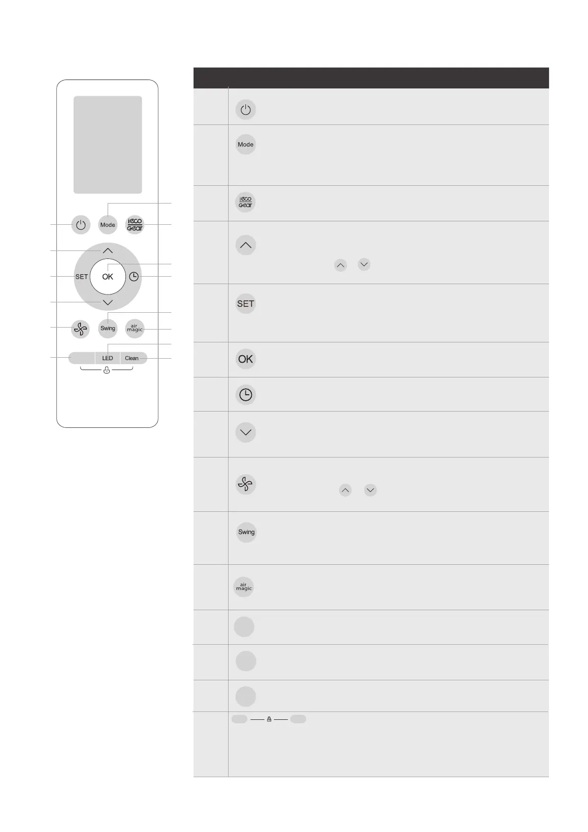 Used to start/stop the Air magic and UV-C lamp (if any)