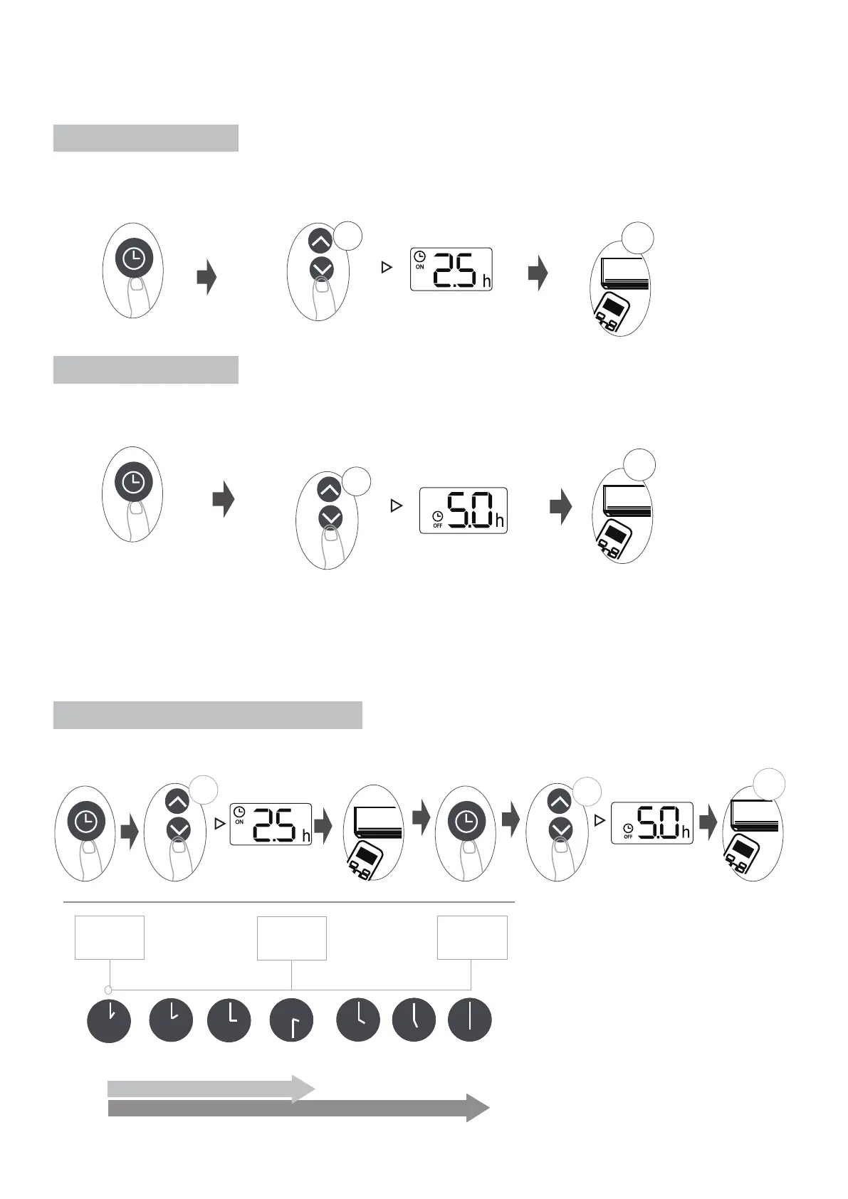 1. When setting the TIMER ON or TIMER OFF, the time will increase by 30 minutes increments with each