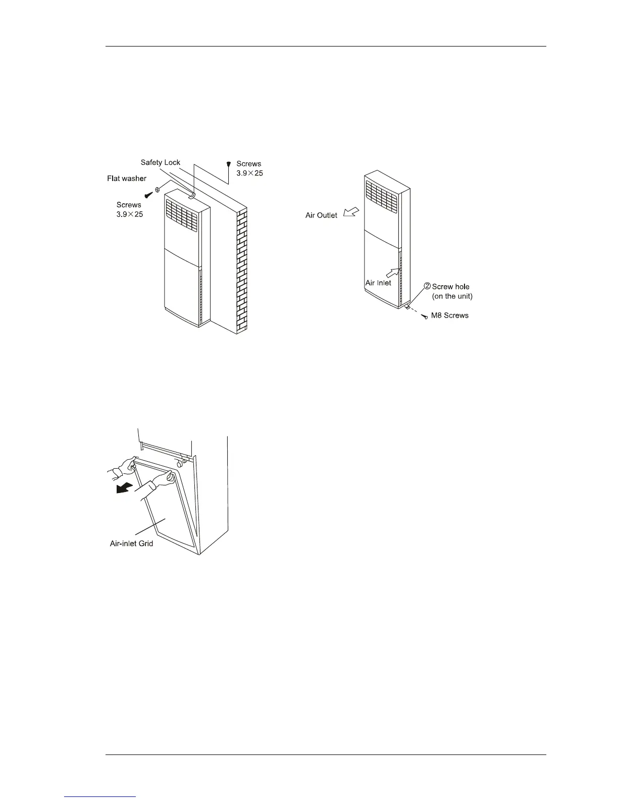 Please take off the air-inlet grid before connecting the pipes/wires.
