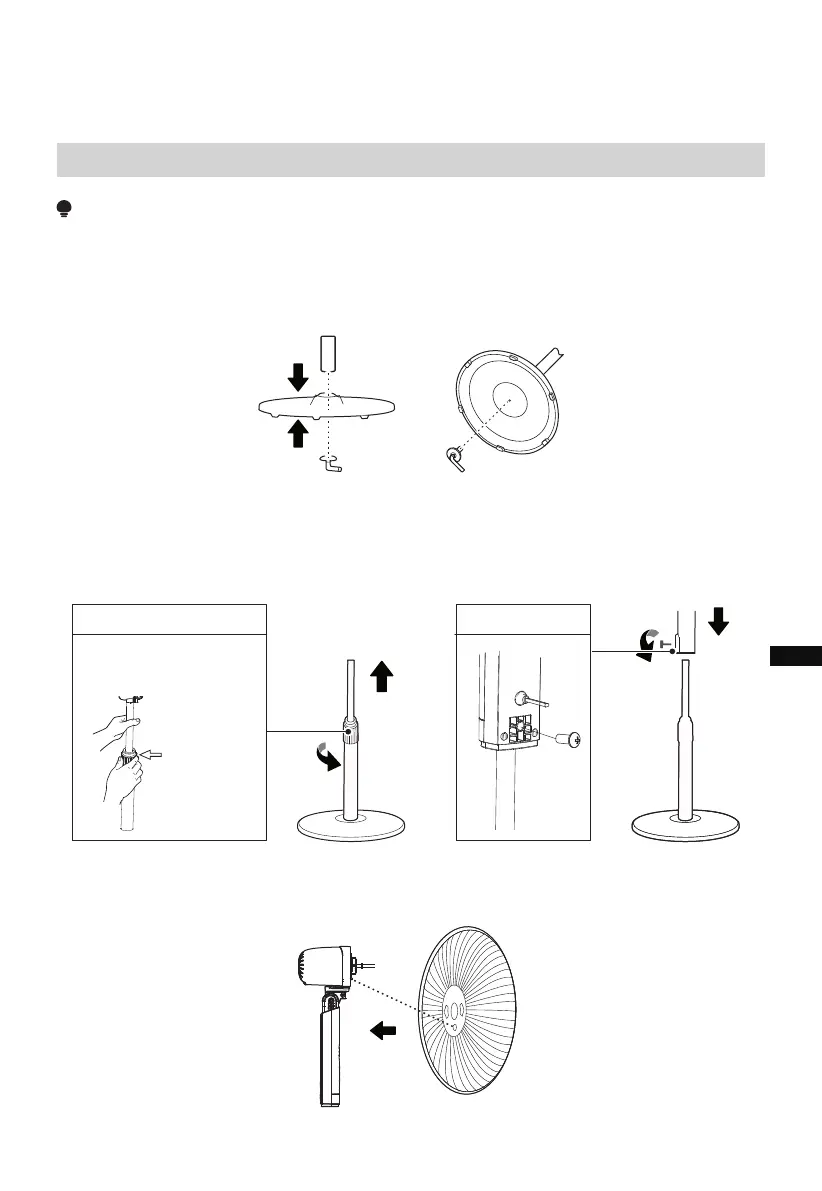 2.1 Tirer et fixer le poteau interne (colonne) après avoir réglé la hauteur en serrant ou