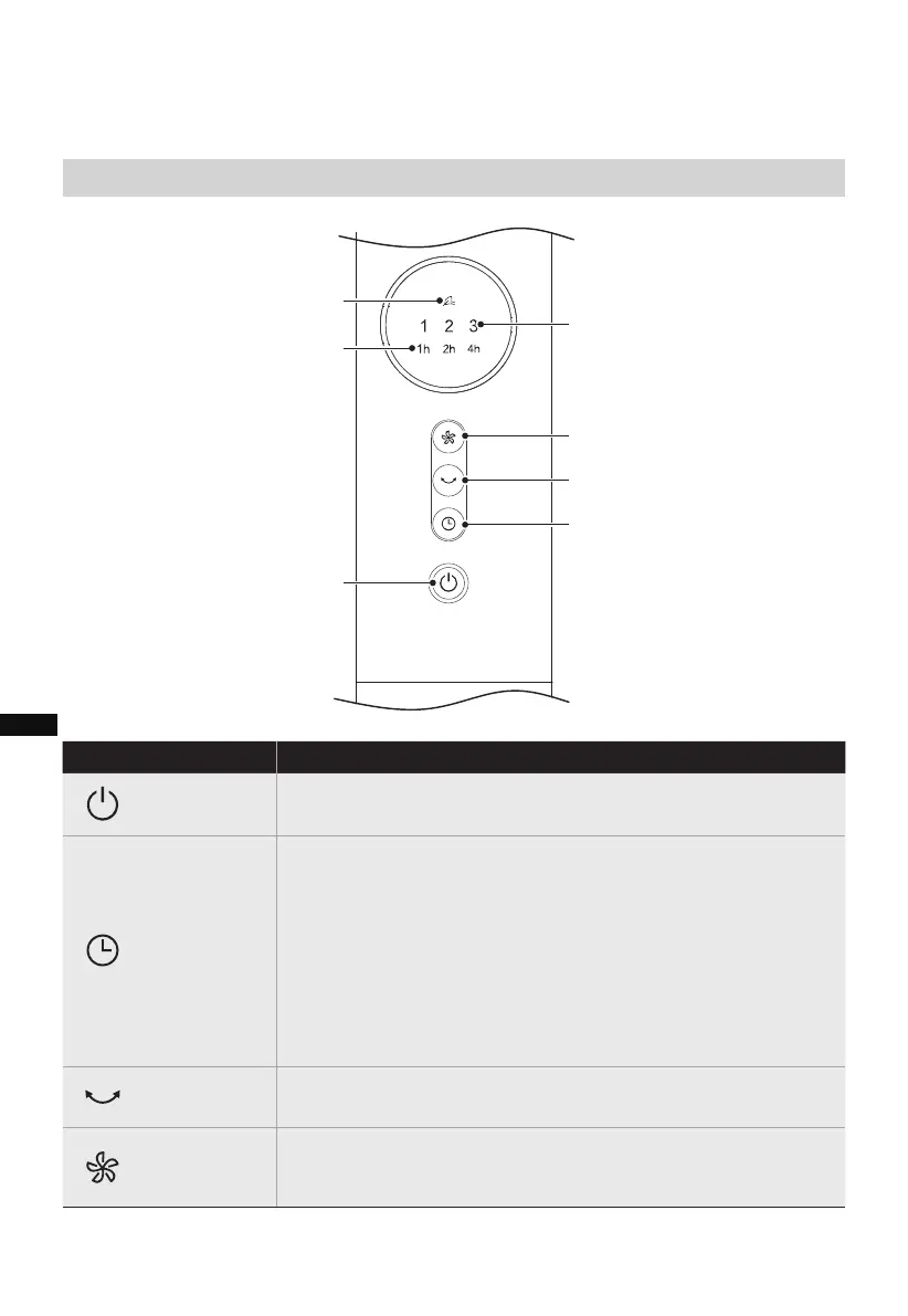 • La touche permet d'allumer le ventilateur. Le ventilateur
