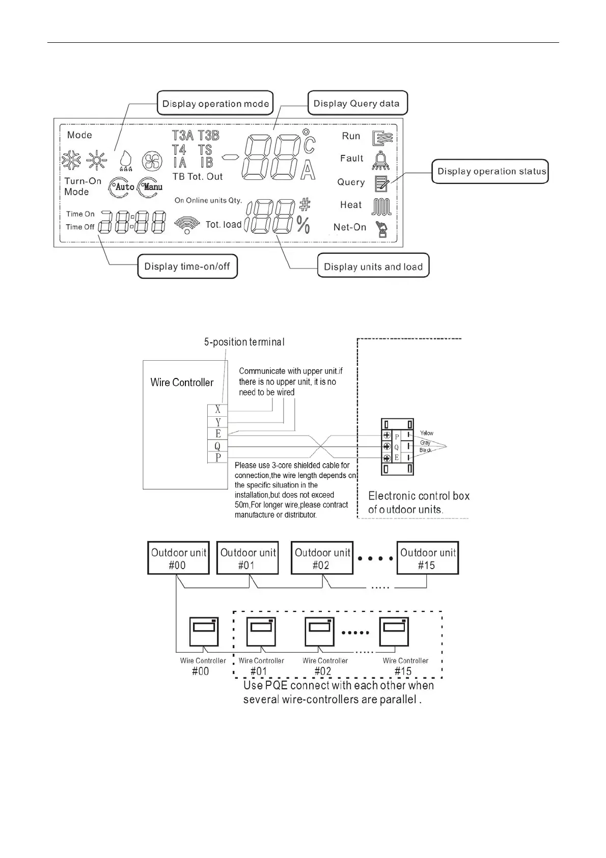 Note: Use PQE position connects with each other when several wire-controllers are parallel.