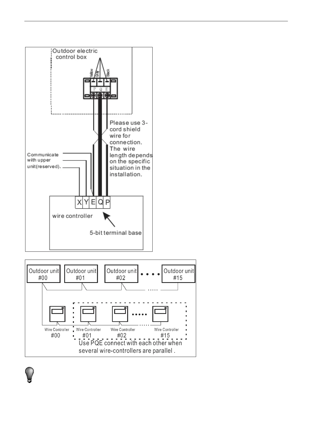 COM(O) in the main control board of the last parallel unit (dial code ). Directly connect to the last