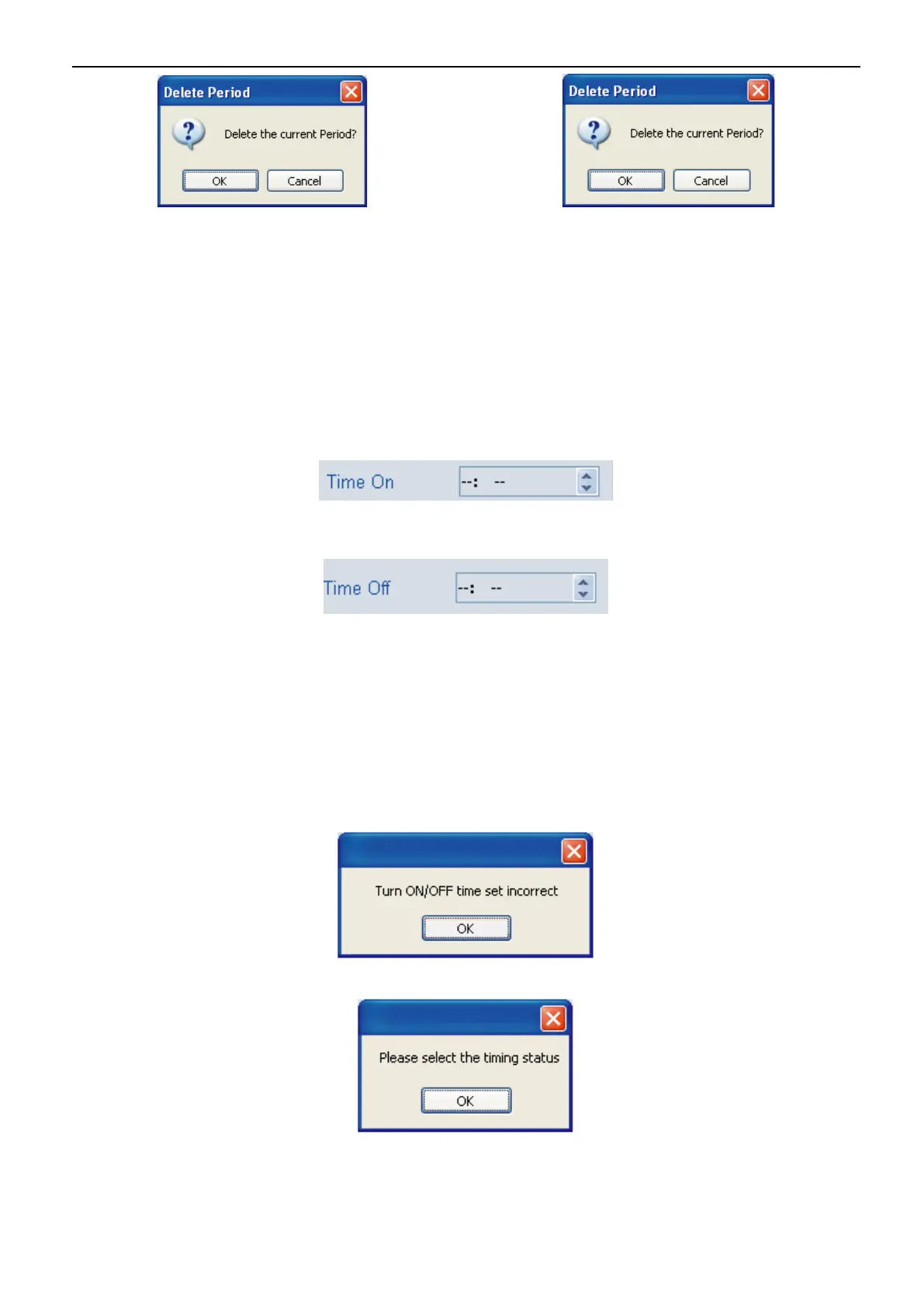 Period1 was 10:00 and the ON time of Period2 was 10:00. If there is error and then will pops-up prompt dialog