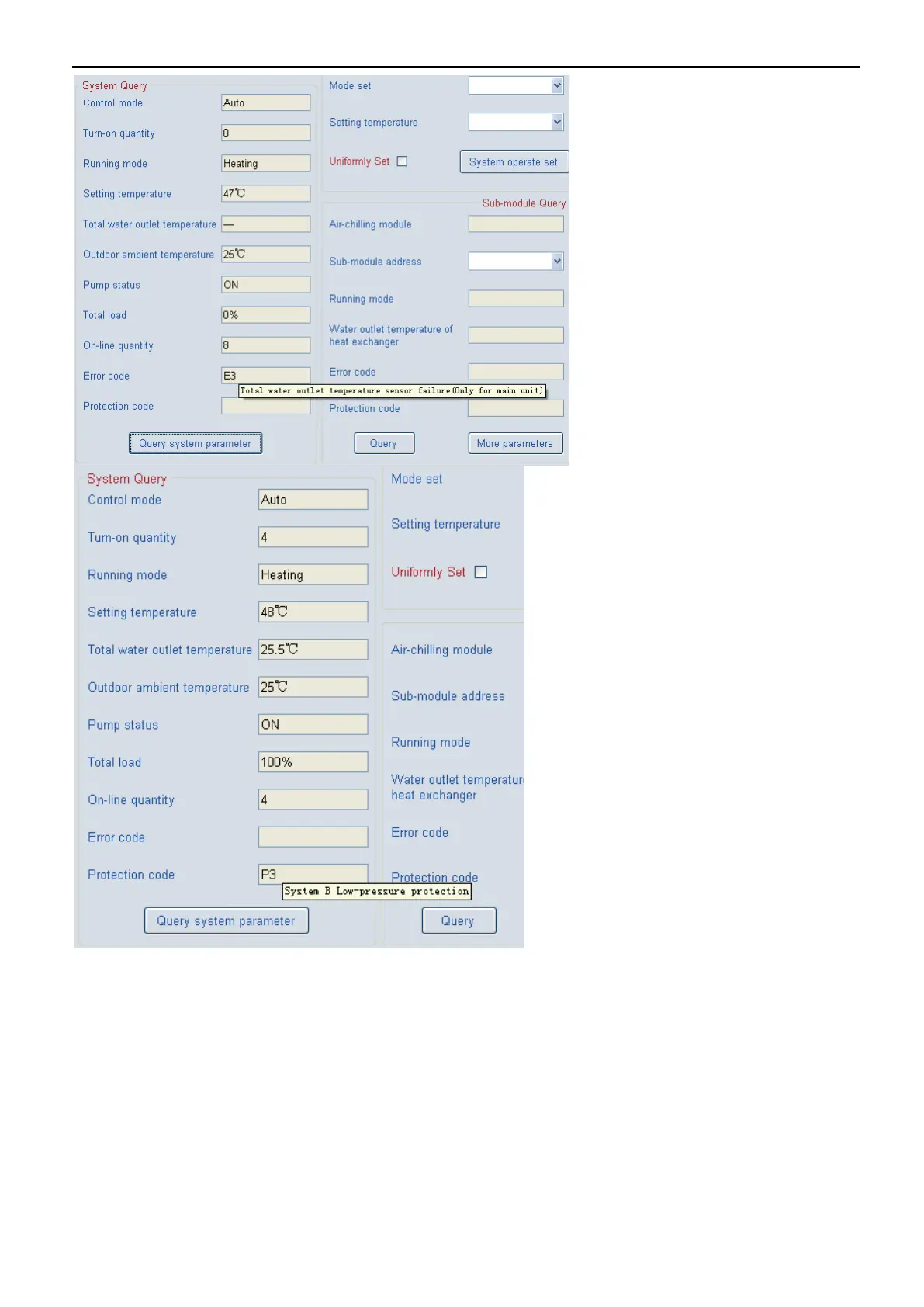 Click the “Query”, system will query the operative status and display the information in the operation interface