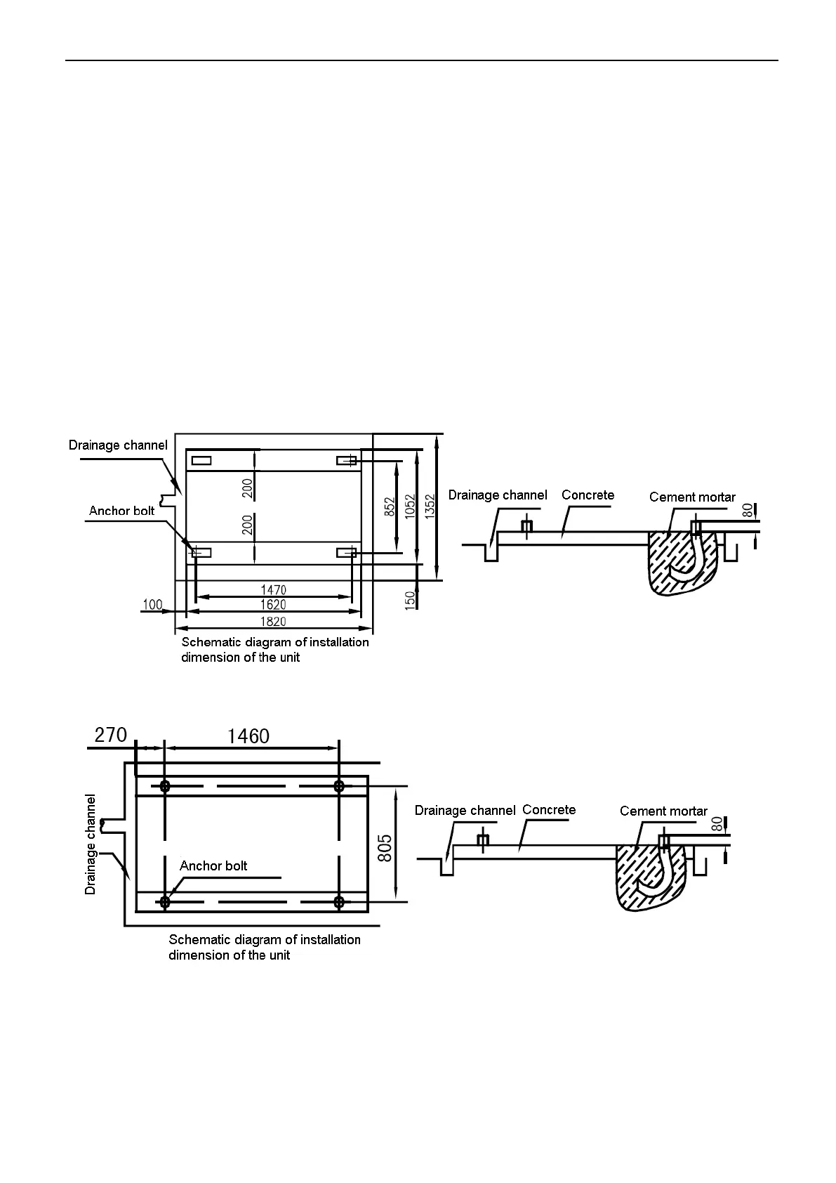 The bottom frame of the unit is not allowed to be embedded into the concrete of installation foundation.