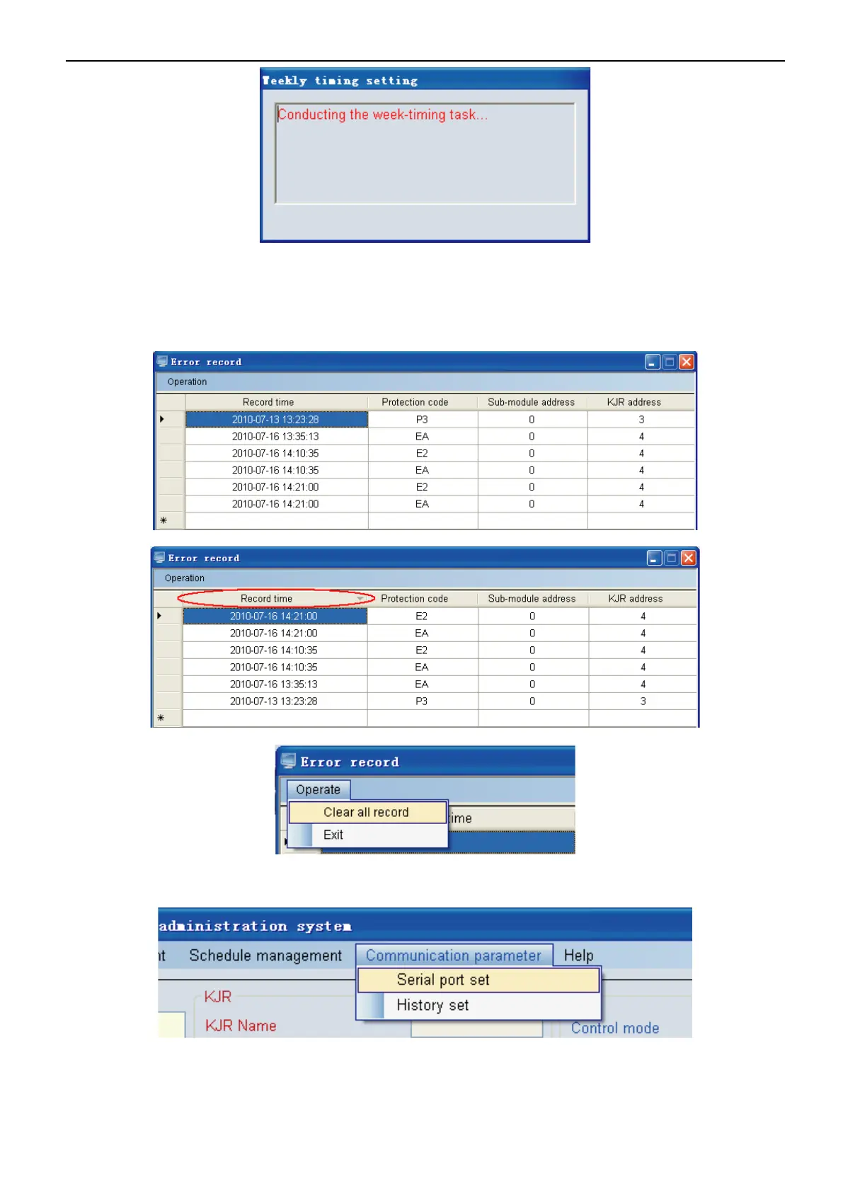 Sub-module address and KJR address (see Fig. 4-47); click the “Record time”、” Protection code”、”