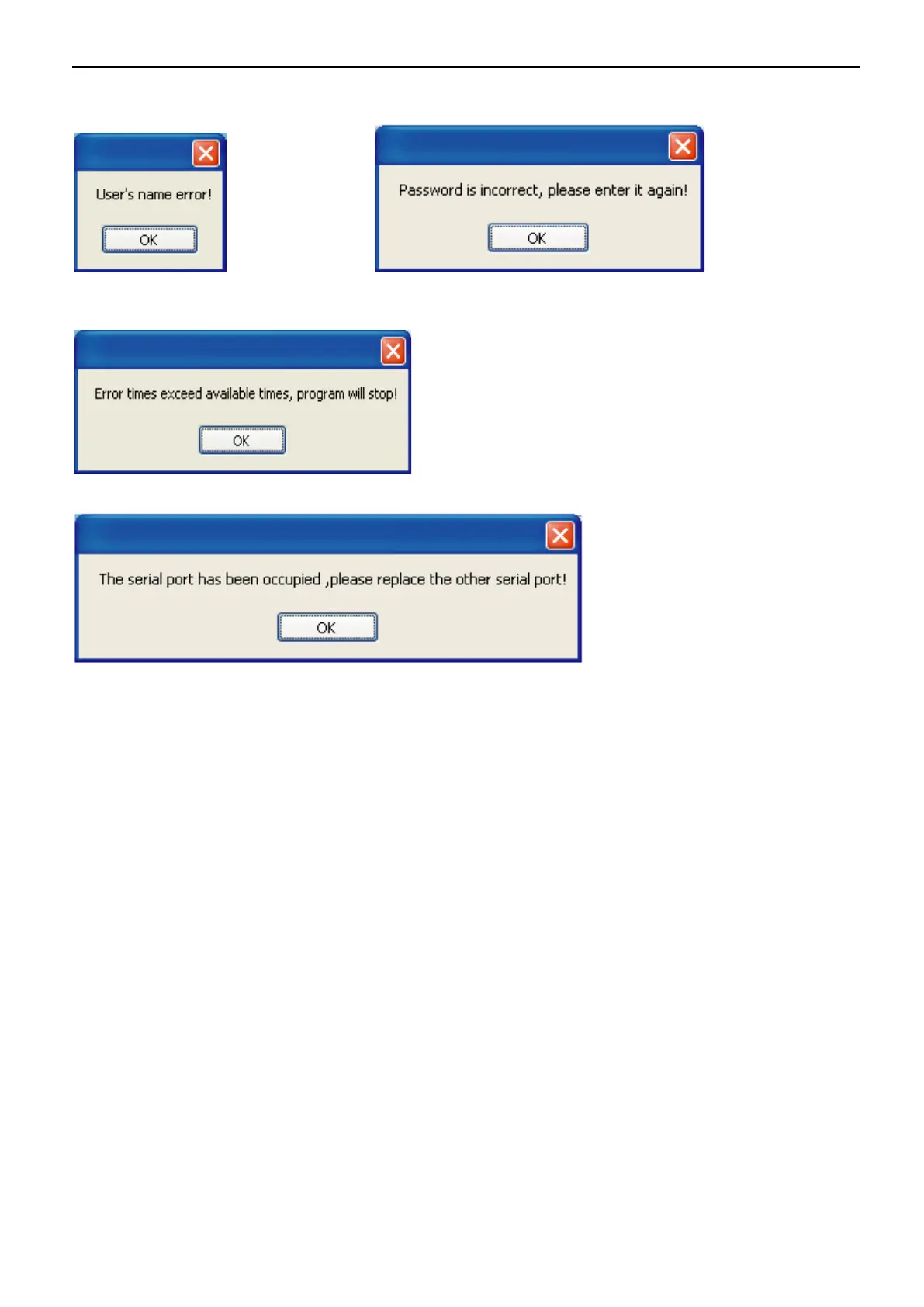 6When provide a wrong USERES NAME, the window as Fig.4-3 will be display, while PASSWORD error,