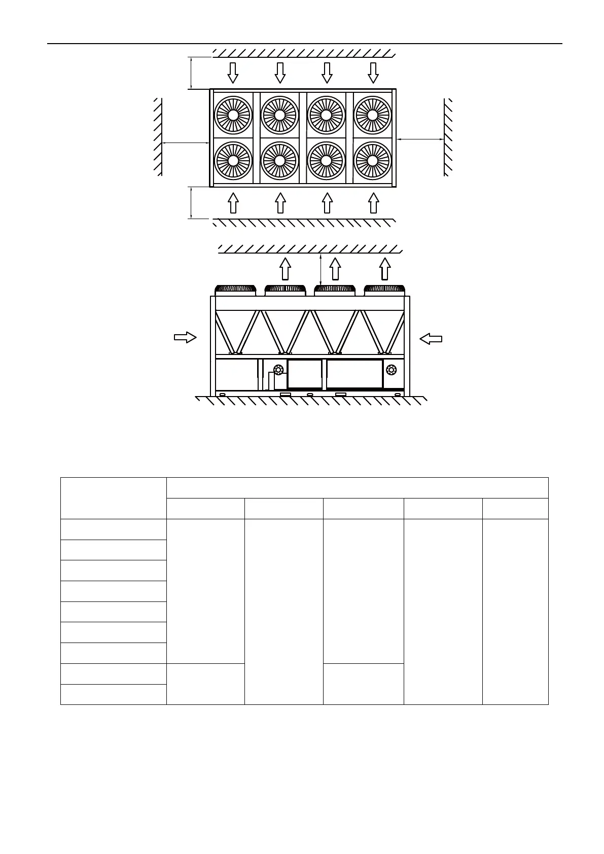 To avoid back flow of the air in the condenser and operational faults of the unit, the parallel installation of