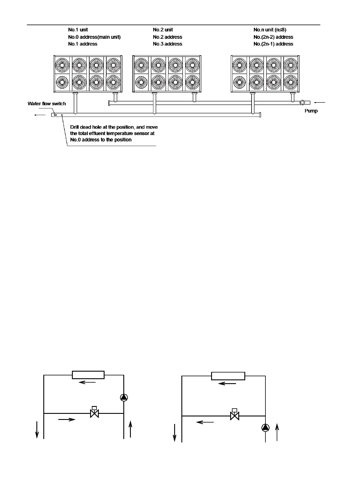 If the system flow is more than the maximum unit flow rate, bypass the evaporator as shown in the diagram to