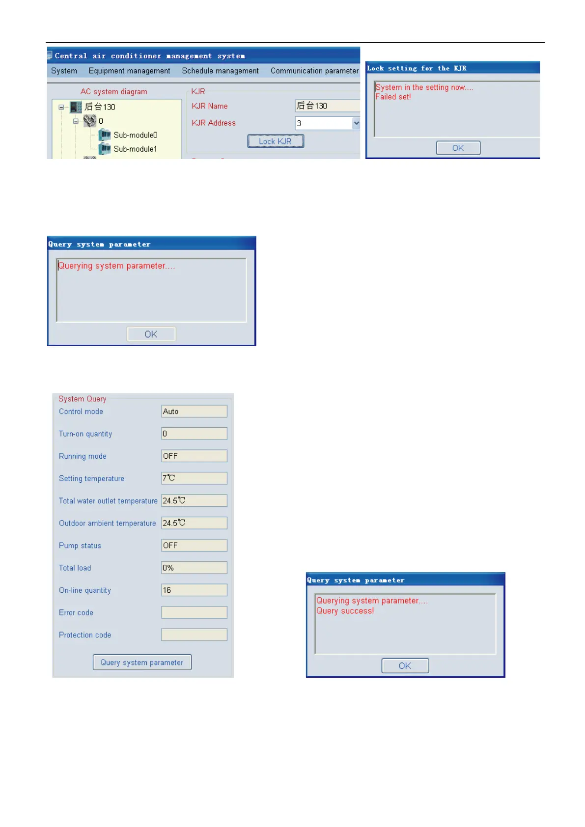 Click “Query system parameter”, system will query the operating status (display the sub-module of 0