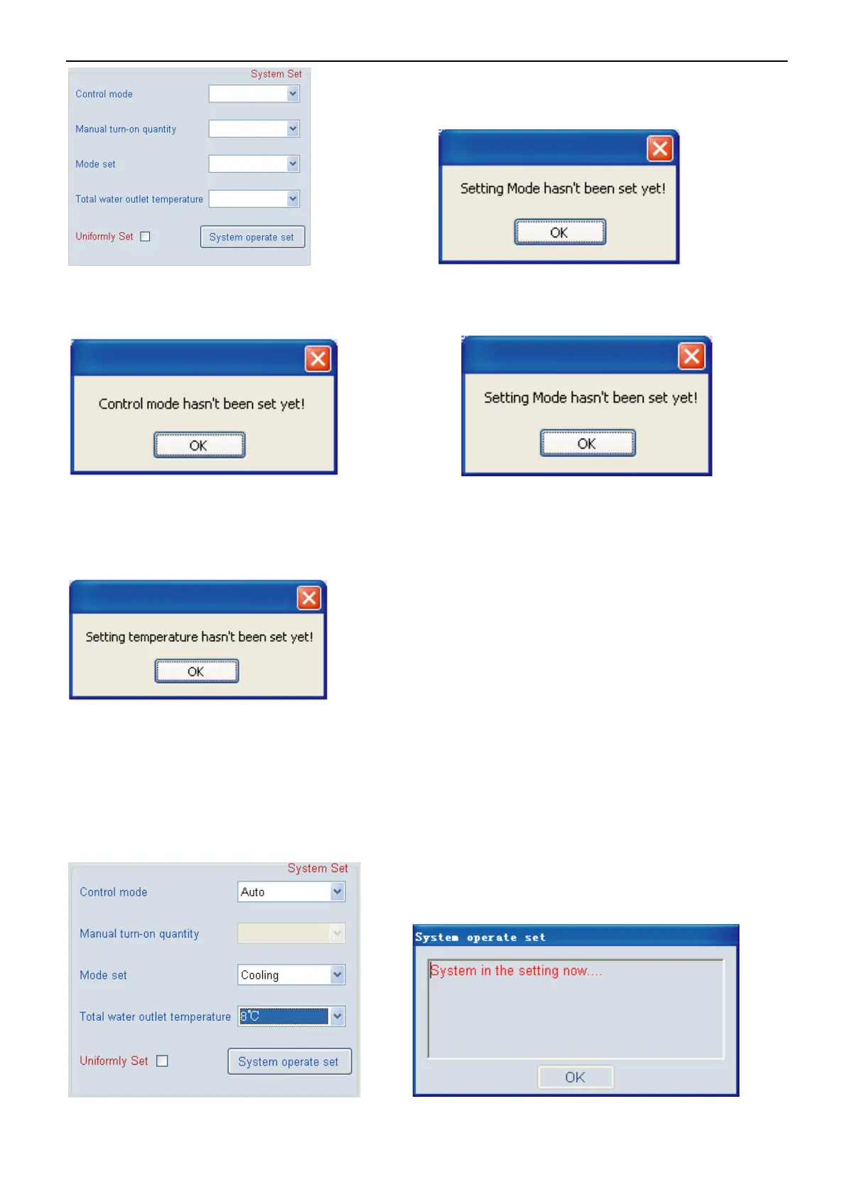 Click the “System operate set” in the conditioner of without Control Mode has been selected, a message box