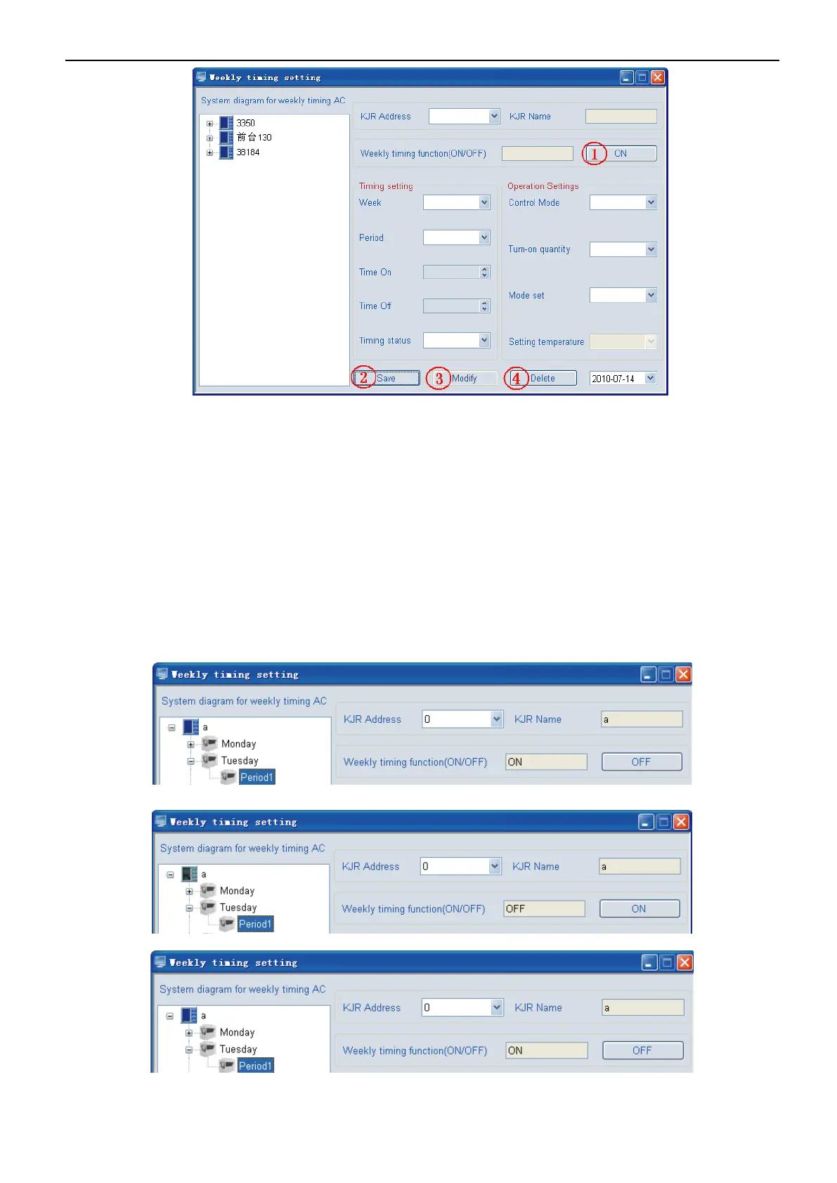 see Fig. 4-31; when Weekly Timing Function is OFF, the key shows ON (see Fig. 4-38), once click the key,