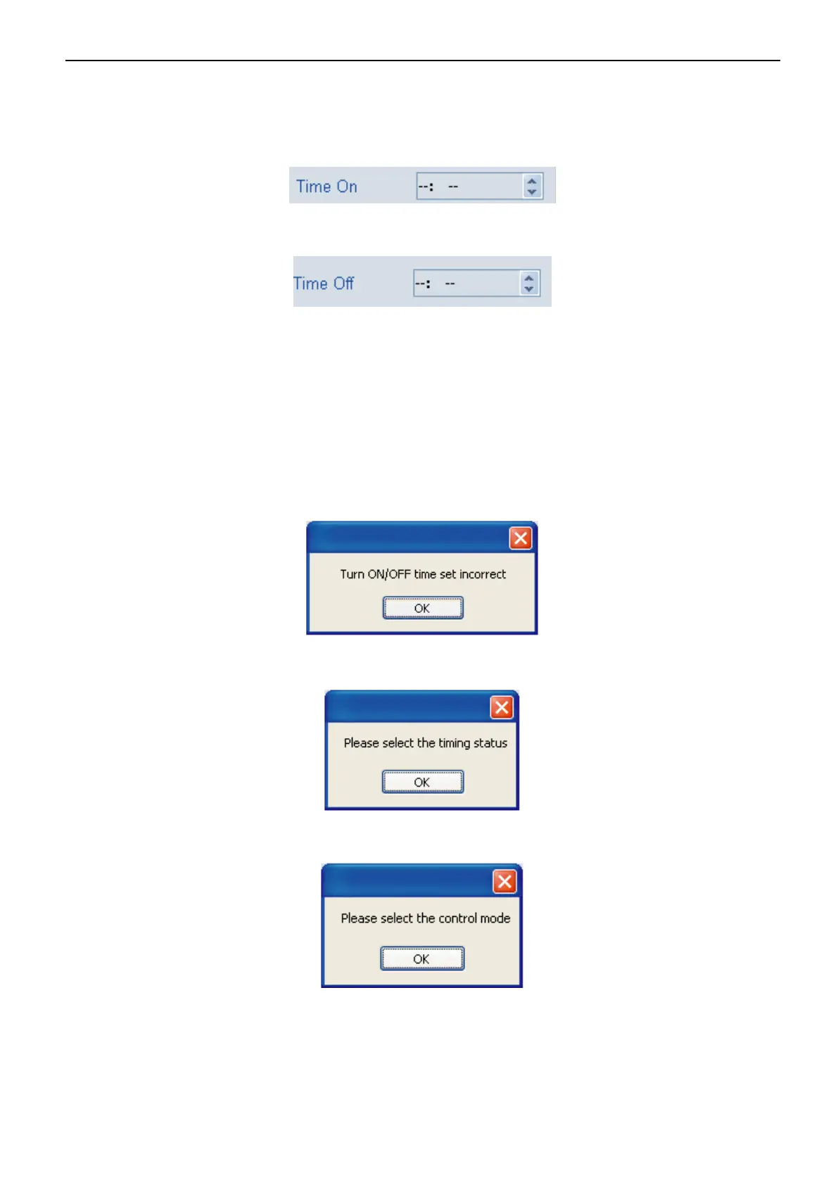 Period1 was 10:00 and the ON time of Period2 was 10:00. If there is error and then will pops-up prompt dialog