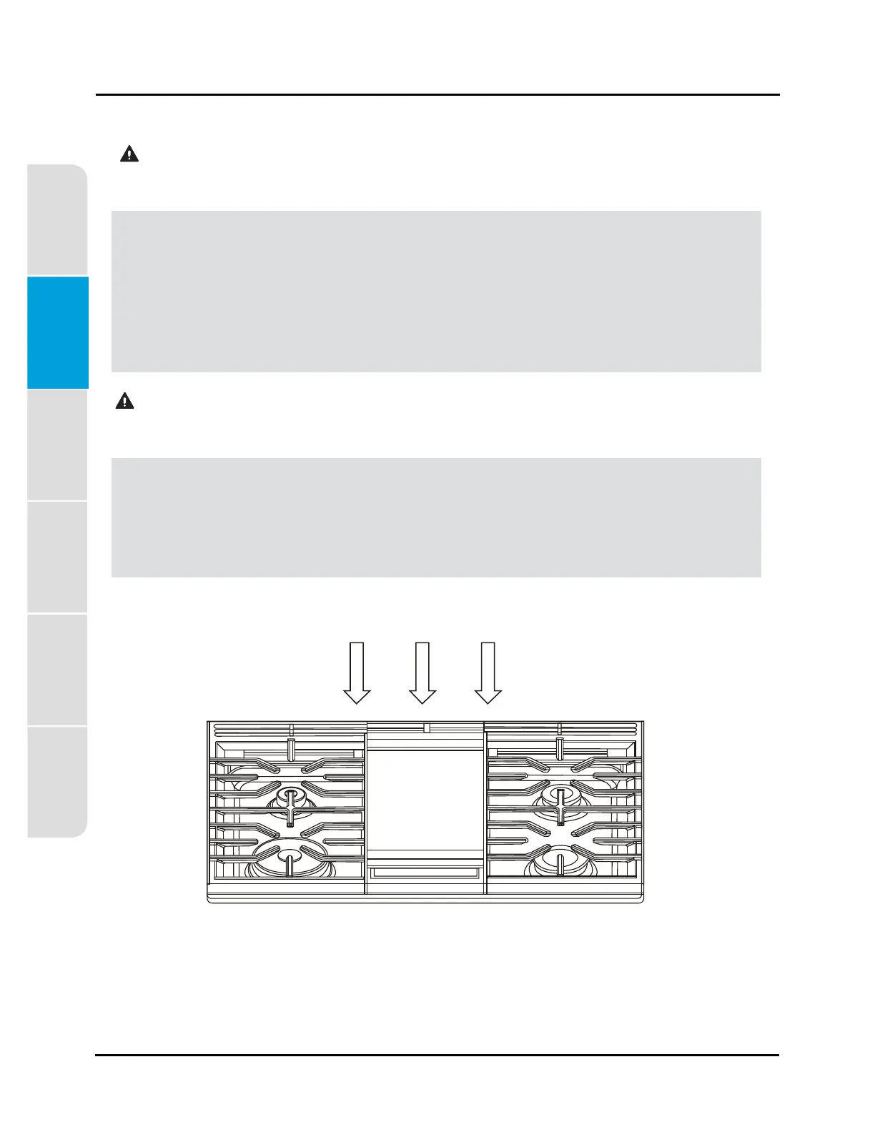 • Do not attempt to lift the cooktop. Doing so may damage the gas