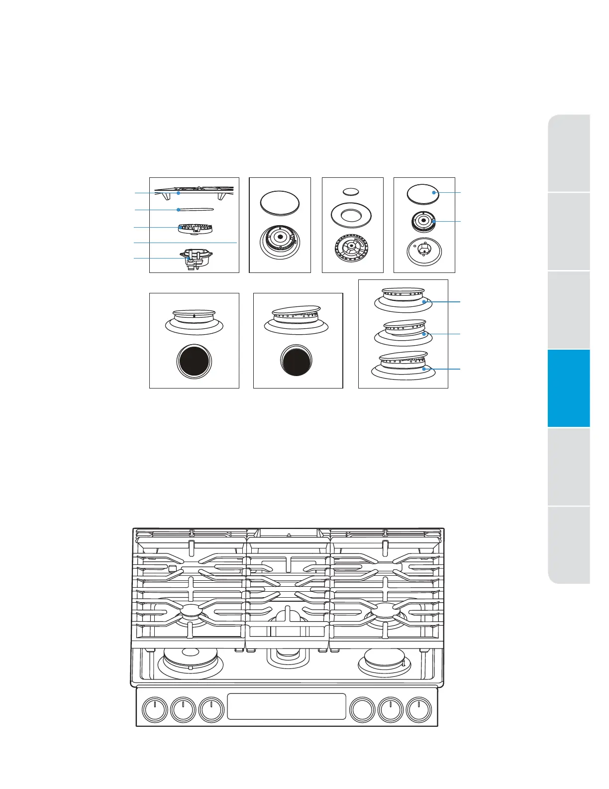 superior de las copas de los quemadores, como se muestra. Cada cabezal