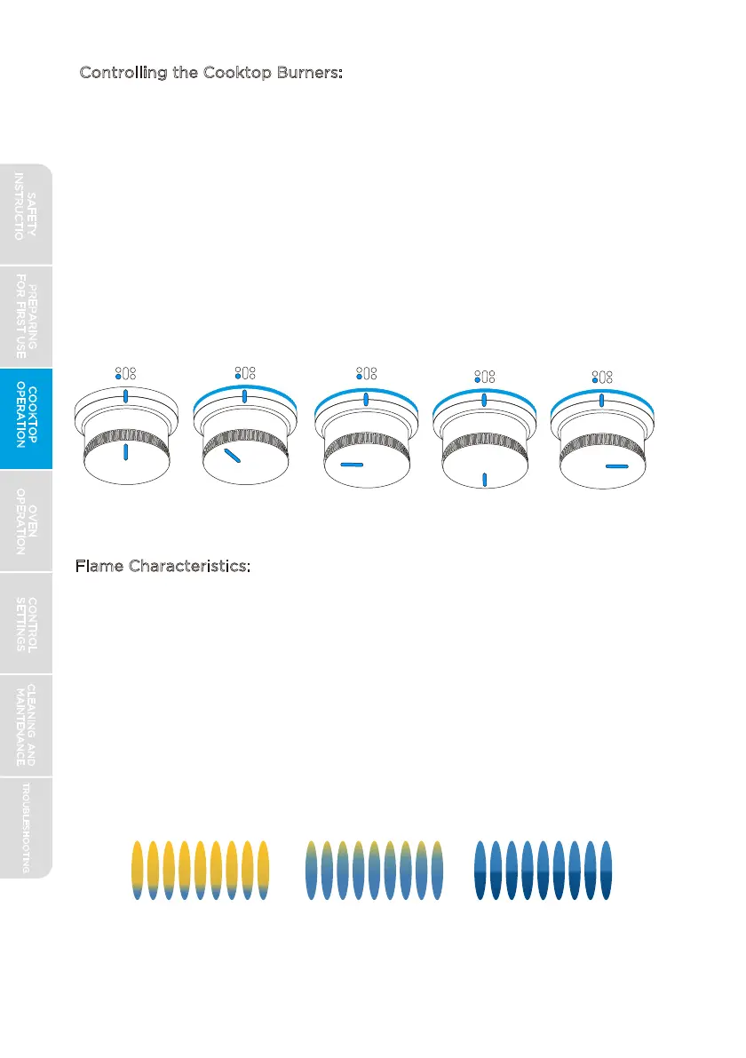 (from OFF to HI) are located on the knob itself. After the burner ignites,