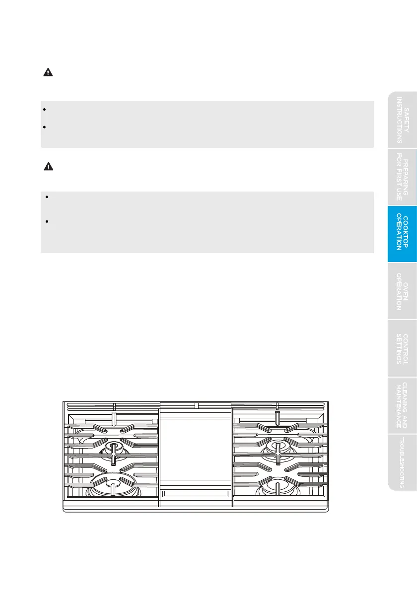 Back of griddle may be hot due to oven vent location, even if cooktop has