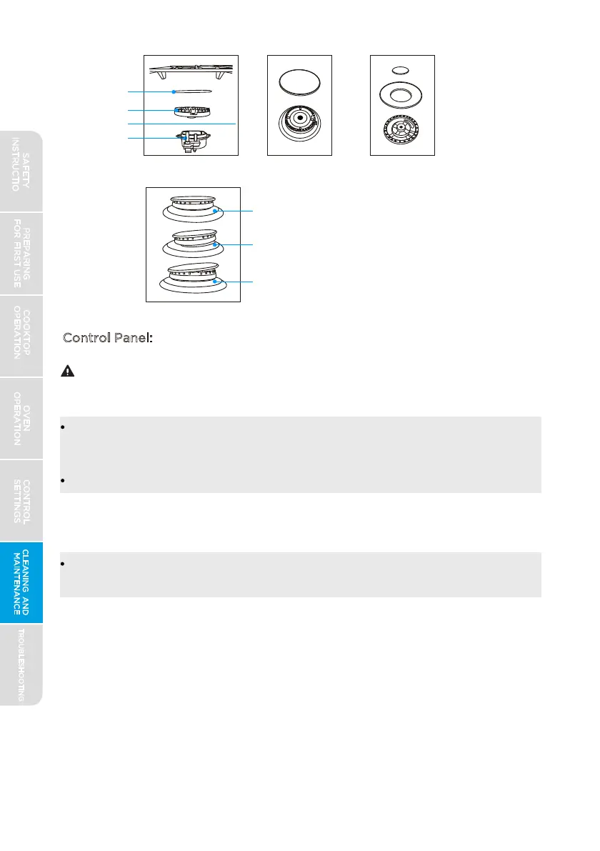 Do not use excessive amounts of water or cleaners to clean knob areas.