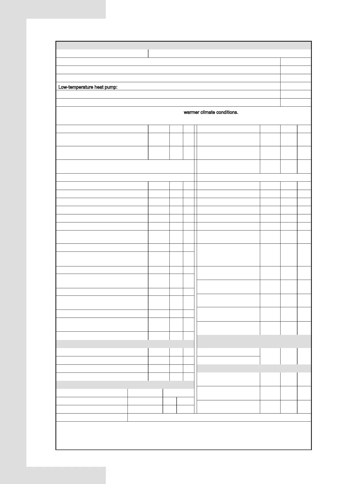 In the table, the data are the parameters of the unit under the warmer climate conditions.