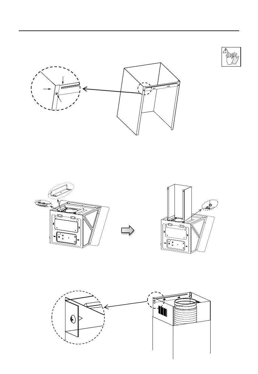 Hook the brackets 13 onto the hood body,and fix them with 2 screws 12 (4.2 x 9.5),making