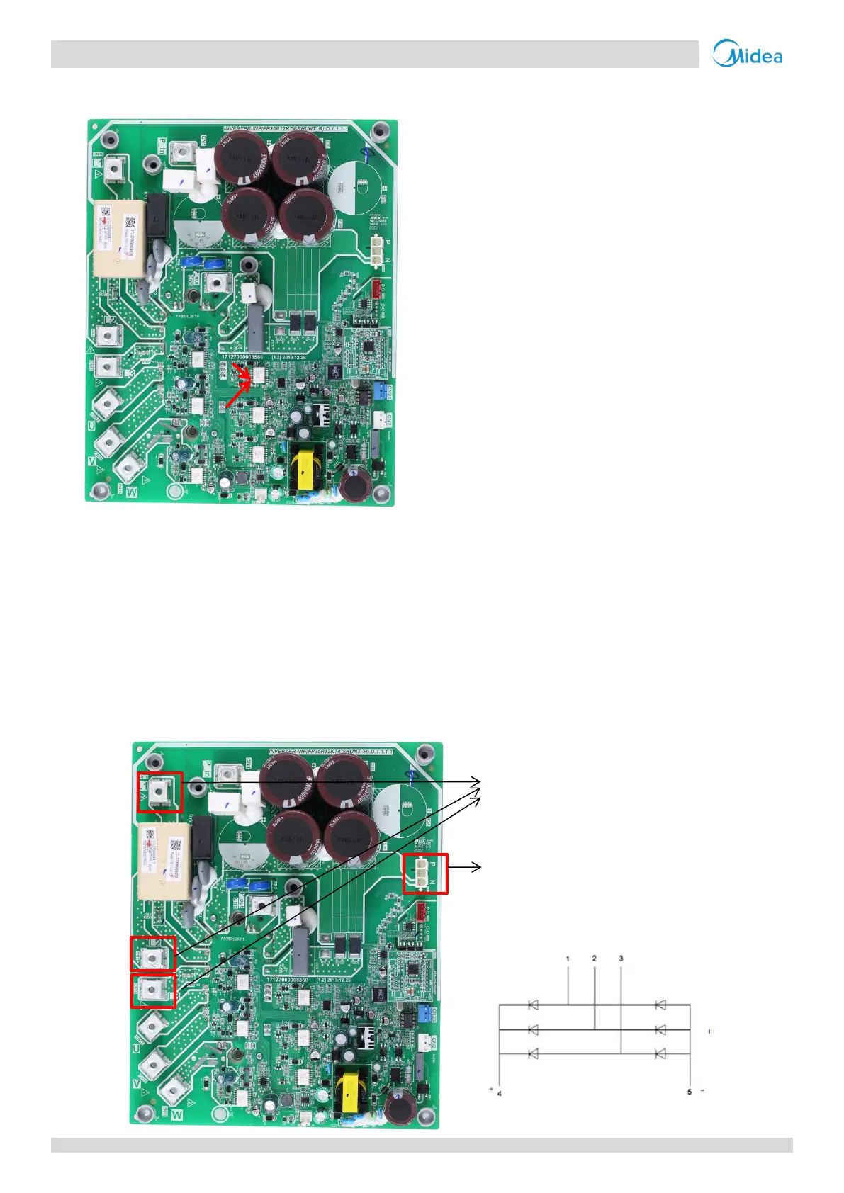 3. Check the +15V circuit according to corresponding wiring diagram. If IC4/5/6PIN12 on inverter module output voltage is not +15V means the inverter