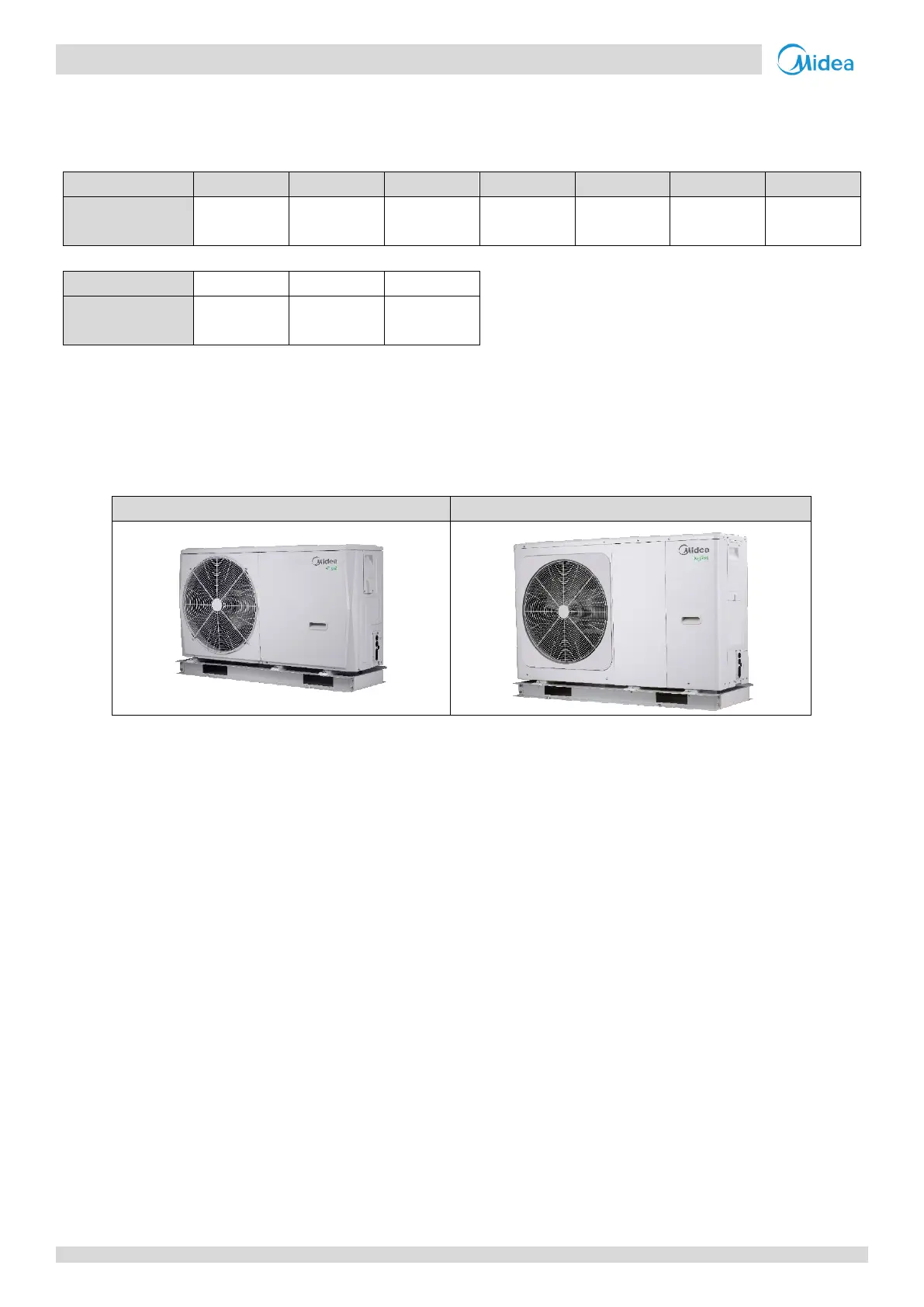 with the shortened model names given in the table. For example, the model name for the 8kW model is MHC-V8W/D2N8.
