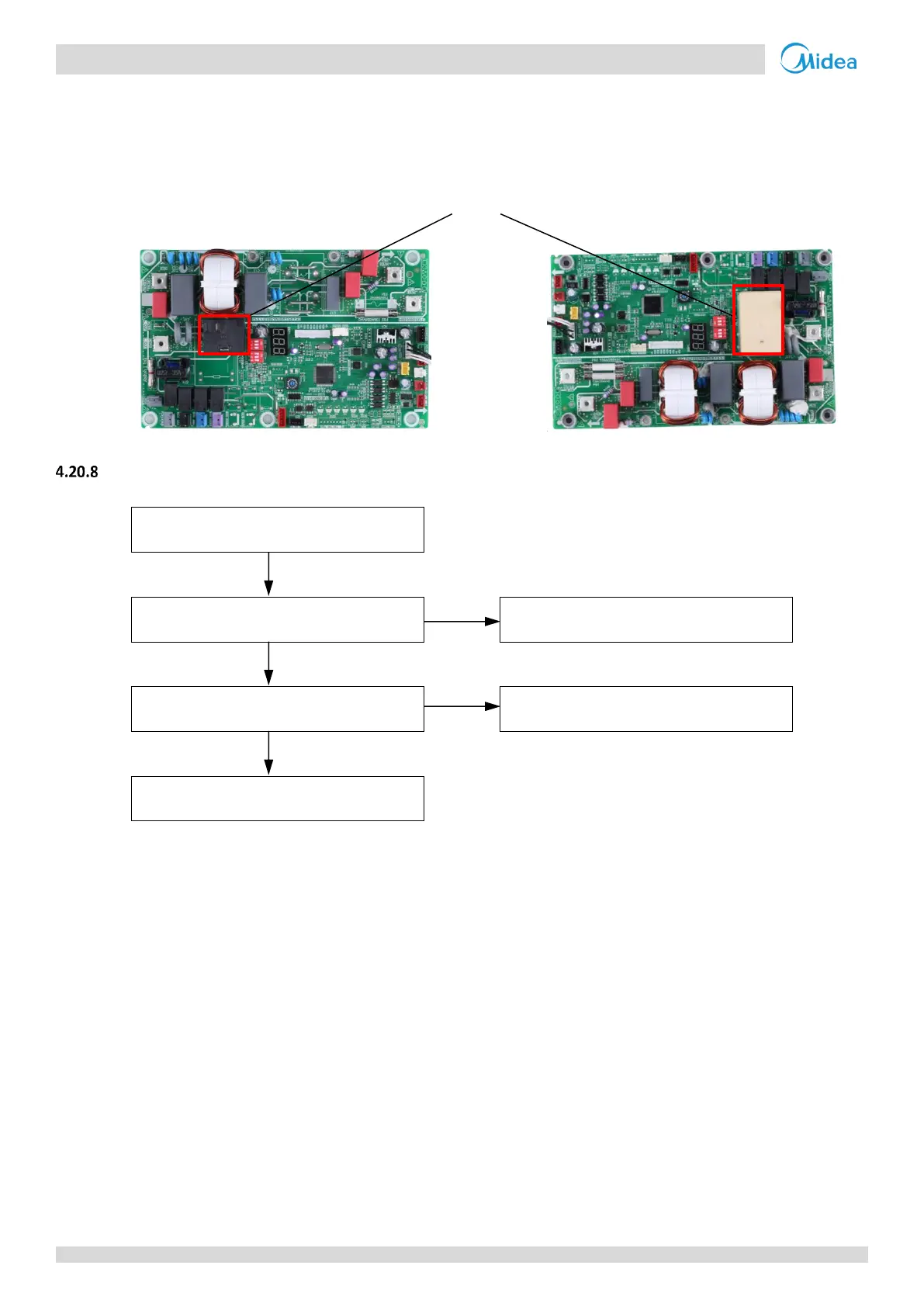 1. If the fan motor is running and the DC voltage between terminals P and N on inverter module declined, Relay on the main control board of outdoor unit is