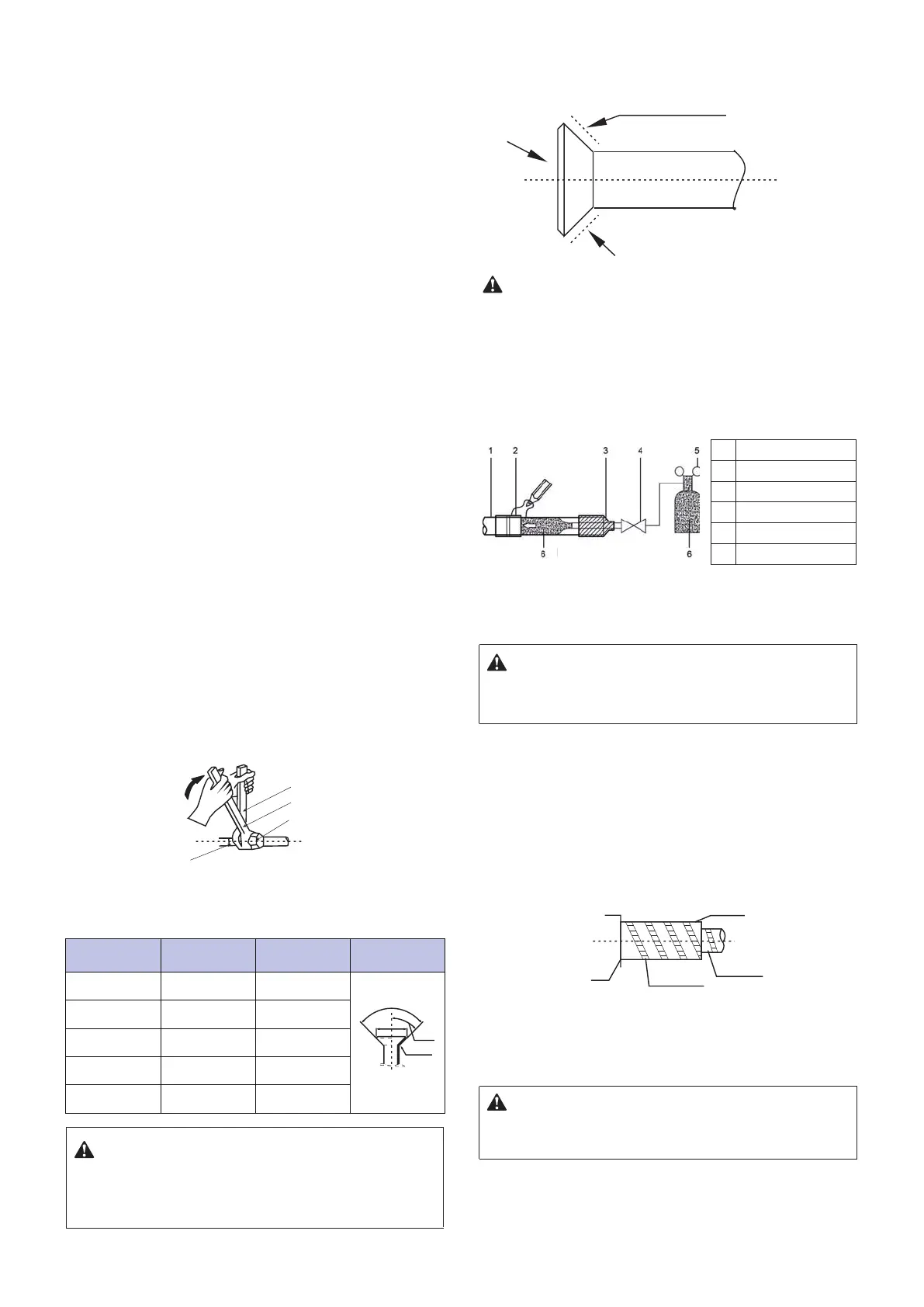 pipe socket. Refer to the following table for the size of the pipe socket and